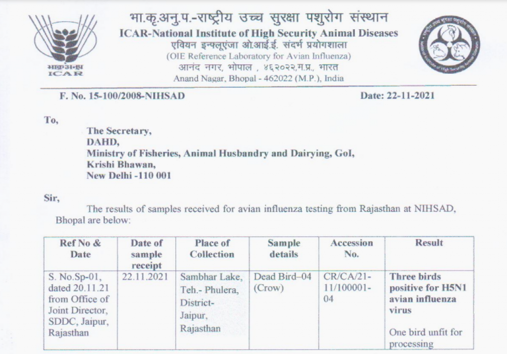 सांभर में बर्ड फ्लू की पुष्टि : 5 दिन में 80 पक्षियों की मौत, झील में भी मिला मृत प्रवासी पक्षी