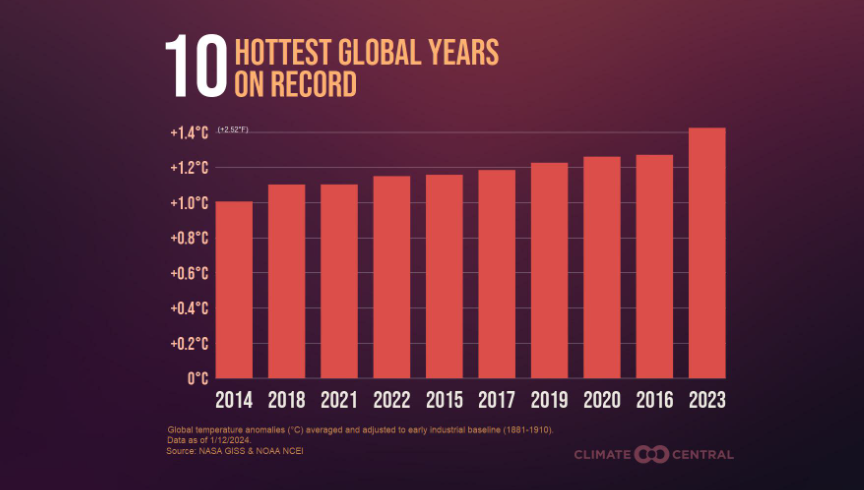 असामान्य गर्मी अब आम बात हो गई है। इतिहास के 10 सबसे गर्म साल पिछले दशक (2014-2023) में हुए हैं। 2016 को पीछे छोड़ते हुए 2023 सबसे गर्म साल रहा है।