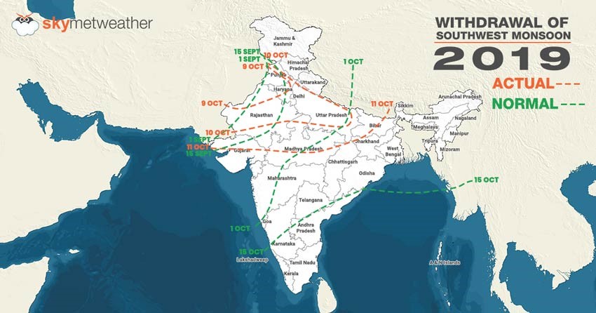 पिछले 58 साल में पहली बार भारत में मॉनसून एक महीने की देरी से अक्टूबर में आकर थमा है। इस साल 10 अक्टूबर को मॉनसून की बारिश थमी। इससे पहले 1961 में 1 अक्टूबर को मॉनसून विदा होना शुरू हुआ था। भारत जैसे देश में यह काफी अजब बात है जहां लोग 1 सितंबर से नया सीज़न शुरू मानते हैं और उसी हिसाब से फसल की तैयारी करते हैं। महत्वपूर्ण है कि इस साल औसत बरसात (Long Period Average – LPA) सामान्य से 110% अधिक हुई जबकि जून के अंत तक बरसात में 33% की कमी थी।