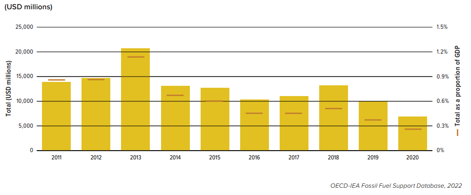 जीवाश्म ईंधन (तेल, कोयला, गैस आदि) के लिए सब्सिडी देने वाले देशों में चीन, इंडोनेशिया और यूके सबसे ऊपर थे। “जी20 में ऊर्जा के लिए लोक वित्त का बड़ा हिस्सा अभी भी जीवाश्म ईंधन उद्योगों को जाता है। 2019-2020 में ऊर्जा के लिए G20 के सरकारी खर्च का 63% जीवाश्म ईंधन पर हुआ।” ओडीआई की सीनियर रिसर्च फेलो और रिपोर्ट की वित्त प्रमुख इपेक जेनक्सू ने कहा।
