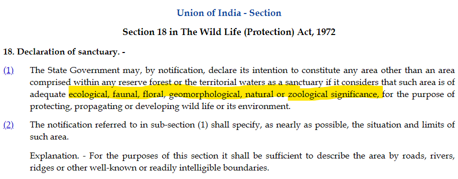 पंजवानी ने वन्यजीव संरक्षण अधिनियम, 1972 का उदाहरण दिया जिसकी धारा 18 में राज्यों को एक अभयारण्य को अधिसूचित करने के दिशानिर्देश दिए गए हैं।